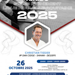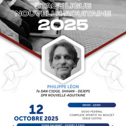Date Dimanche 12 Octobre 2025 Lieu Dojo Fédéral de Cestas - Route de Canéjan 33610 Cestas - Sur autoroute A63 Direction Bordeaux Arcachon/Bayonne - sortie n°25 Horaires 9h30-12h30 Tarifs 20€ Organisation Ligu...