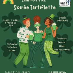 A vos agendas ! Le samedi 7 mars venez fêter la Saint Patrick avec nous pour une soirée conviviale Soirée Tartiflette avec Le...