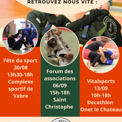 Arts Martiaux • RODEZ (12) • JIU JITSU BRESILIEN 12 Retrouvez nous sur les forums de rentrée Fête du Sport : complexe sportif de Vabre, de 13h30 à 18h le samedi 30 aout. Forum des Associations : Saint Christophe, de 15h à... Publié le 28 août 2025