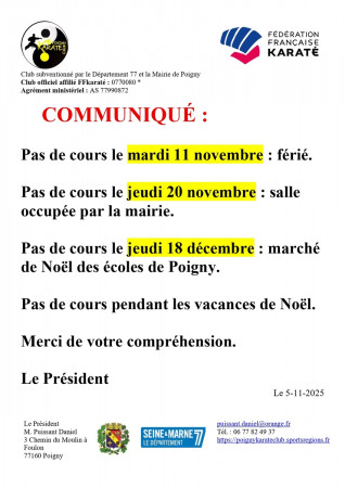 Pas de cours le mardi 16 décembre