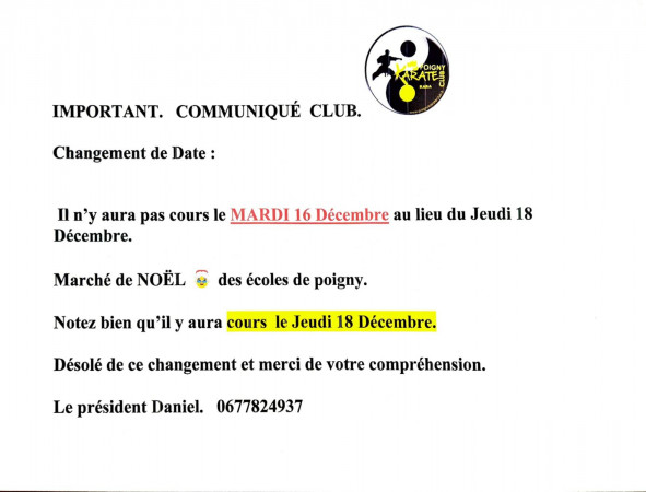 Il n'y aura pas cours le mardi 16 décembre au lieu du jeudi 18 décembre.