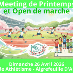 Dimanche 26 avril 2026 Journée des jeunes à Aigrefeuille Poussins, Benjamins et Minimes Rdv à 11h30 pour les Poussins et pour les autres 1h avant votre première épreuves Epreuves pour les poussins = 50m, 1000, Longueur et vortex Merci de répondr...