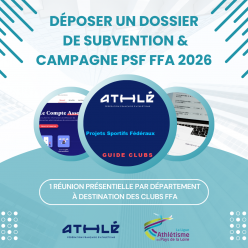 Réunion destinée aux clubs sarthois : (re)faire un point sur l'utilisation du Compte Asso : déposer une demande de subvention / déposer un compte-rendu financier évoquer le montage financier d'un projet aborder la campagne PSF FFA 2026...