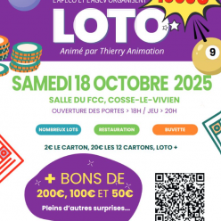 Publié le 05 octobre 2025LOTO APECO/AGCV À COSSÉ-LE-VIVIEN ! Samedi 18 octobre 2025 Salle du FCC, Cossé-le-Vivien Ouverture d...