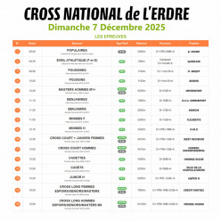 Cet évènement est ouvert à toutes les catégories. Les informations et les inscriptions sont à retrouver sur le lien suivant : cross national de l'Erdre