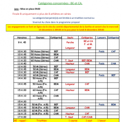 Inscription : Fichier d'inscription avant le dimanche 7 décembre Le maillot du club est obligatoire Conseils : - Arrivez au moins 1h avant le début de votre course ou de votre concours. - se pointer sur la fiche de présence pour signaler sa part...