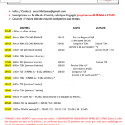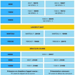 Rendez-vous à 8h20 sur le parking du stade où 1h avant le début de votre course/concours sur place Retour prévu vers 17h40 Ne pas oublier le maillot de club et les pointes ! Attention, je ne serais pas présente lors de cette compétition Répo...