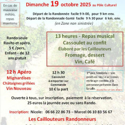 Randonnade d'Automne 2 marches 9h00 randonnée 9h30 promenade Apéritif Repas et animations