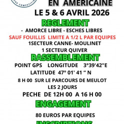 Grand prix de Biches en américaine. 1 secteur canne, moulinet et 1 secteur quiver. Rendez-vous sur le parcours de Meulot.