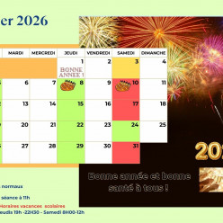 Chers adhérents, chères adhérentes, Nous vous communiquons ci-dessous les horaires des séances pour le mois de Janvier: Samedi 3...