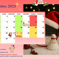 Nous vous communiquons ci-dessous les horaires des séances pour le mois de Décembre: Lundi 1 Décembre : 20h30 à 22h30 🏸...