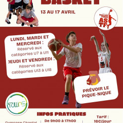 Nous organisons un stage de basket pendant les vacances scolaires de Printemps du mercredi 15 au vendredi 17 avril et du lundi 20...