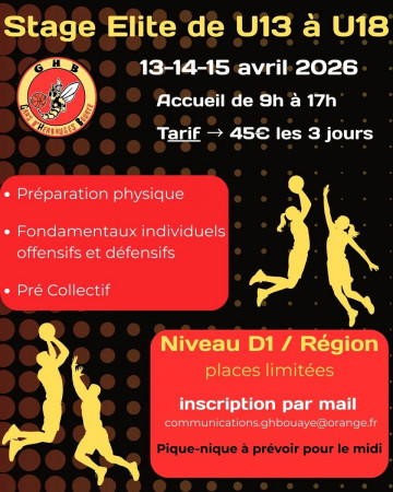 Le GHBouaye organise un stage Élite destiné aux joueurs et joueuses évoluant en D1 ou en R...