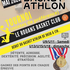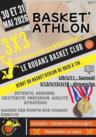 Bonjour, Le Rouans Basket Club organise son traditionnel Basket’Athlon 3x3 le 30 et 31 mai 2026. 📅 Samedi 30 mai : U9 – U11 📅 Dimanche 31 mai : U13 – U15 – U18 ⏰ De 9h30 à 17h Au programme : épreuves techniques, match 3x3, défis ludiques et points...