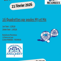 Coupe ANGLESKI 16 QUADRETTES M3/M4 par poules en 2 tours1er tour : 13h30 2eme tour : 14h30Réserve ta série !