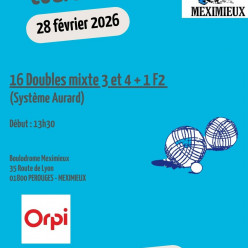 Coupe ORPI 16 DOUBLES MIXTES 3 et 4 + 1 F2 autorisé Système AurardDébut : 13h30 On attend votre réservation