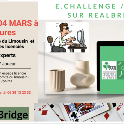 Ne manquez pas la 6ᵉ séance du E-Challenge par paires organisé par le Comité du Limousin sur la plateforme RealBridge. Organisée...