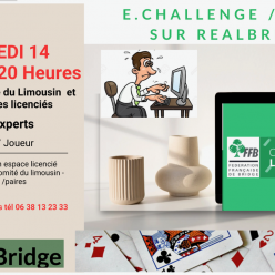 4ème séance du Challenge par Paires sur RealBridge Organisée par le Comité du Limousin – ouverte à tous les licenciés ! Mercred...