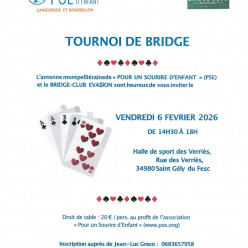 Le Club organise un tournoi caritatif au profit de PSE ( Pour un Sourire d'Enfant) le vendredi 6 février ( venir à 14h15) . Il au...