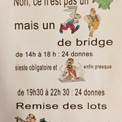 Venez partciper au marathon de bridge le 1° avril prochain selon le déroulement suivant : Premier tournoi à 14h (assis à la table à 13h55) Buffet froid 😋 Deuxième tournoi vers 19h-19h30. Des lots 🍾seront attribués aux premiers de chaque séri...