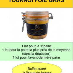 Mardi 16 décembre aura lieu le traditionnel tournoi Foie Gras suivi d'un buffet sucré. Pensez à vous inscrire pour faciliter l'or...