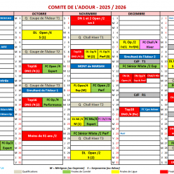 Vous trouverez le calendrier des compétitions du Comité de l'ADOUR 2025-2026, dans l'onglet "Infos pratiques", puis "Documents"