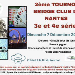 Le Bridge Club de Nantes organise pour la deuxième année consécutive un tournoi réservé aux joueurs de 3e et 4e séries (en group...
