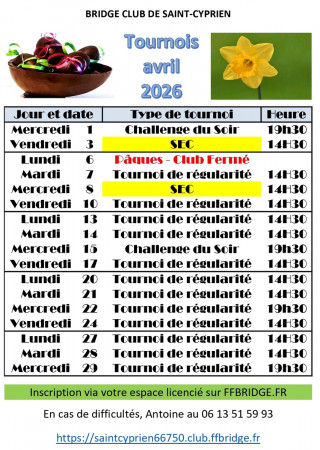 Site officiel du club Bridge Club de Saint Cyprien à SAINY CYPRIEN (Pyrénées Orientales)
