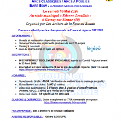 Mandat inscription en ligne unique ment sur le site du Comité Régionale (tarif 8 Euros) https://tiralarc-normandie.fr/inscription-trj-2026/ Date limite inscription avant le 30 Avril 2026