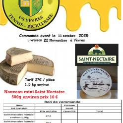 Publié le 01 septembre 2025Dans le cadre des activités Tennis et Pickleball la section sportive de L’US Yèvres vous propose une vente de Saint Nectaire Fermi...