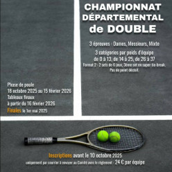 Publié le 18 septembre 2025📢 Avis à nos licenciés !Les inscriptions pour le championnat départemental de double sont ouvertes jusqu'au 10 octobre 2025 📌Plus...