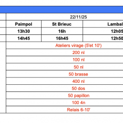 Départ le vendredi 21 novembre à 19h15 du grand parking des Aquatides, retour le dimanche en fin d'après-midi. Pique-nique du vendredi soir à prévoir. Participation de 64euros (chèque à remettre avant le week-end) pour les nuitées et repas ainsi qu...