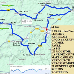 23 Novembre : 64 Km Départ: 9 H D790 (direction Plouray) – LE MERDY – KERVIDAM (prendre à gauche) – CROIX de KEREVEN – GLOMEL –...