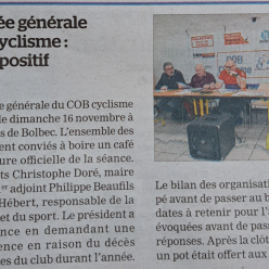 - L'assemblée générale du COB Cyclisme s'est déroulée ce dimanche 16 novembre à la salle Rabelais de Bolbec à partir de 9h30. - L...