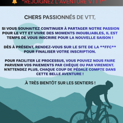 Inscriptions pour la saison 2026 : Se rendre sur le site FFC et nous faire parvenir vos paiements par chèque ou par virement. ...