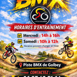 INFO: entrainements sur la piste de BMX mercredi de 14h à 16h samedi de 10h à 12h les horaires peuvent changer en hiver la pi...