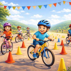 Quelques jeunes sont venus tester l'ambiance. Ils possèdent déjà les bases du vélo et se sont essayés sur les chemins après avoir...