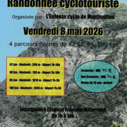 L'Entente Cyclo de Montmélian organise le mercredi 8 mai sa randonnée annuelle. Départs entre 7h et 10h pour 4 parcours route fléchés de 40,74,80 et 102 km Salle La Savoyarde à l’arrière de l’Espace François Mitterrand, rue Léon Dupuy. Toutes les i...