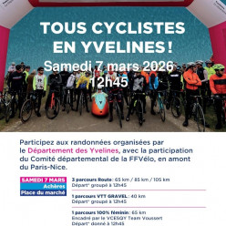 Rando Cyclo « Paris-Nice » (2026) « Tous cyclistes en Yvelines » « Tous cyclistes Yvelines » est une randonnée cyclotouriste (gratuite), offerte par le Conseil départemental des Yvelines, la ville d'accueil du départ de la 1ère étape e...