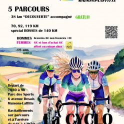 Randonnée à allure libre sur plusieurs parcours dans les Yvelines (78). Départ du stade du parc des sports - 6 Avenue Desaix - 78600 Maisons-Laffitte - de 7h 30 à 9h00 5 parcours - 1 parcours "découverte" 38 km pour tous les nive...
