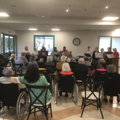 Comme chaque année, nos chanteurs et musiciens ont été reçus comme avec gentillesse par le personnel de la Maison des Anciens du B...
