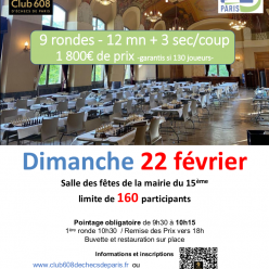 Inscription obligatoire pour chaque date, au plus tard le vendredi précédent à 18h00. Voici le lien à utiliser : https://l-echiquier-chalonnais.assoconnect.com/collect/description/585663-d-parties-de-la-champagne-18-janvier-2026 En cas d’empêchemen...