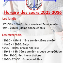 On prend son agenda, sa plus belle plume et on note !!!!! Cours d’essai: -> Enfants à partir de 6 ans. Aix : (salle d'armes de...