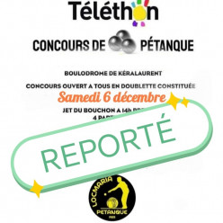 Après une erreur de calendrier, le concours de Locmaria Pétanque du 6 décembre pour le téléthon sera reporté à une date ultérieure...