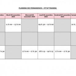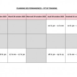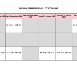 Planning des permanences du lundi 27 au vendredi 31 octobre 2025 ⚠️ Un créneau supplémentaire mardi 28 octobre de 10h45 à 11h45.