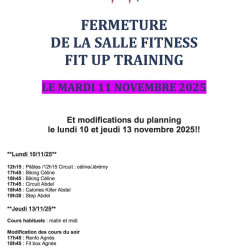 FKASH INFO : A partir du samedi 8 novembre 2025 Modification des horaires des cours 9h30-10h30 : renforcement musculaire 10h3...