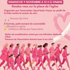 Bonjour à tous, Rejoignez-nous pour la marche rose le dimanche 9 novembre à Onans, en partenariat avec la Ligue contre le cancer.L...