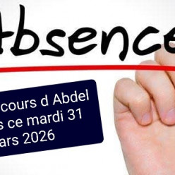 Publié le 02 avril 2026Désolée, aucun profs disponibles ! Les cours d’Abdel sont annulés ce mardi 31 mars! N’hésitez pas à vous reporter sur le Pilates,...