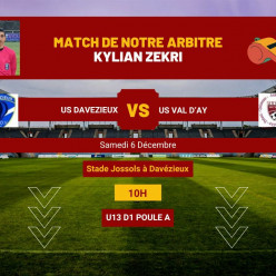 Programme de notre Jeune Arbitre !!! Kylian sera demain sur le terrain de Davézieux, pour officier un match de U13 D1, opposant l...