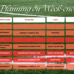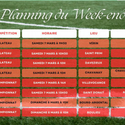 Planning du Week-end !! Tout le monde sera sur les terrains, hormis nos vétérans, pour un repos bien mérité. Samedi, Il y aura l...